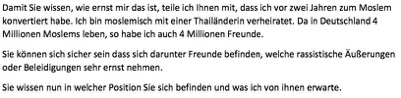 Zum Rassisumsvorwurf, habe ich auch erst mal etwas überlegen müssen aber die Erklärung kam auch in der vorgenannten E-Mail: